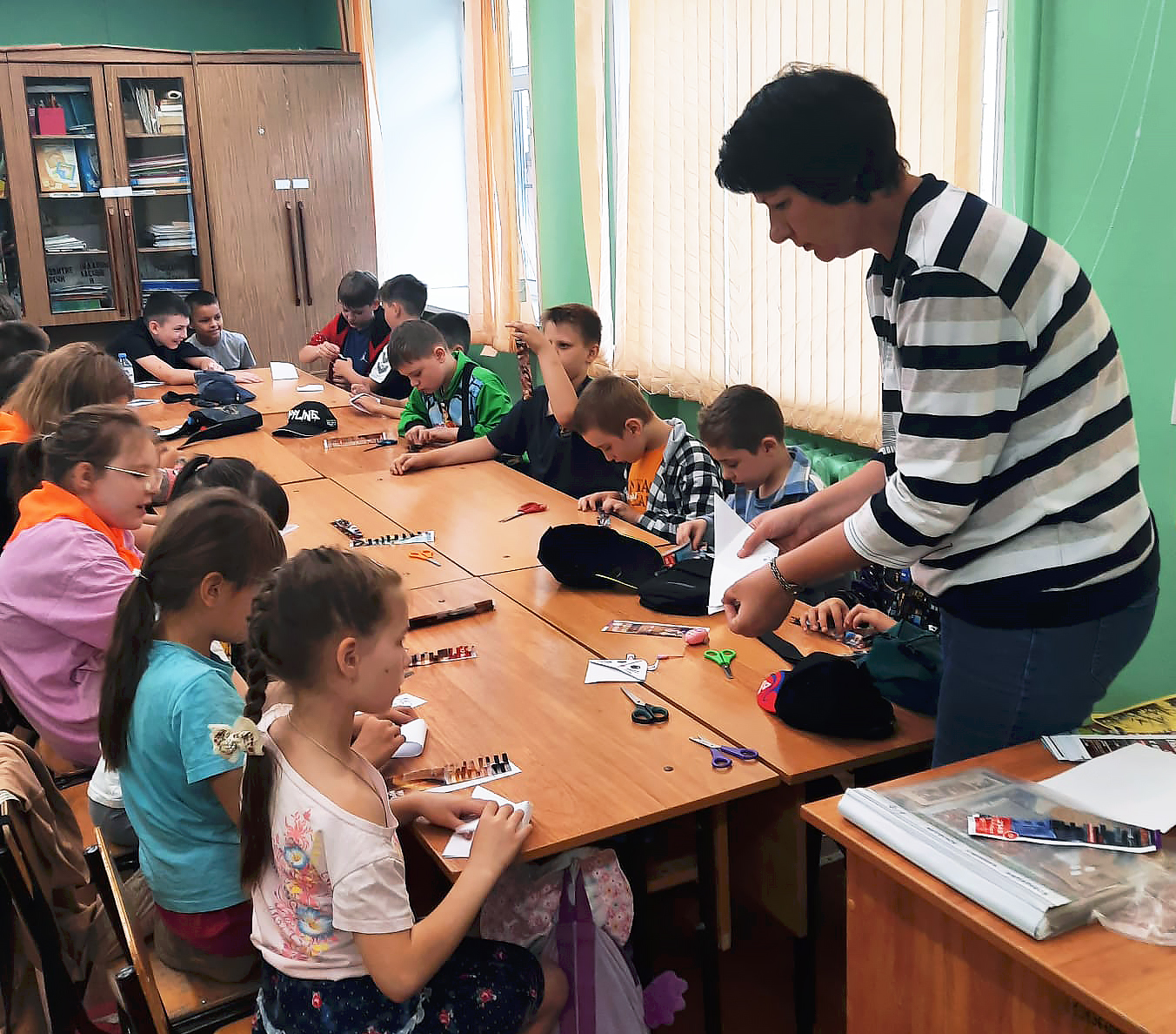 10 и 17 июня 2025 года сотрудники отдела основного книгохранения библиотеки провели мастер-класс по изготовлению книжных закладок для детей из пришкольного лагеря школы № 35 им. А. Г. Перелыгина.