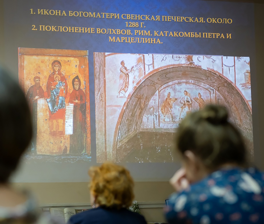 Лекция была посвящена истории Свенского монастыря, который является одним из древних и известных монастырей в России. Его создание связано с Печерской иконой Пресвятой Богородицы. Легендарное повествование об иконе Богоматери Свенской представляет собой сюжетную основу «Сказания о зачатии Свенского монастыря». Шла речь о древней истории появления и пребывания иконы в Свенском монастыре Орловской губернии, легендах, связанных с иконой, её аналогах в византийской живописи.