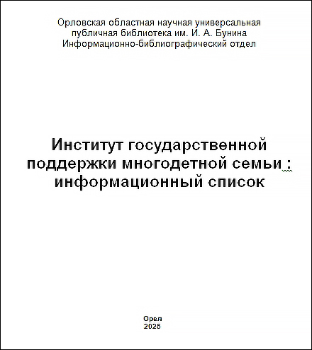 3 июля 2025 года на сайте библиотеки в разделе «Ресурсы правовой информации» размещен информационный список документов «Институт государственной поддержки многодетной семьи».