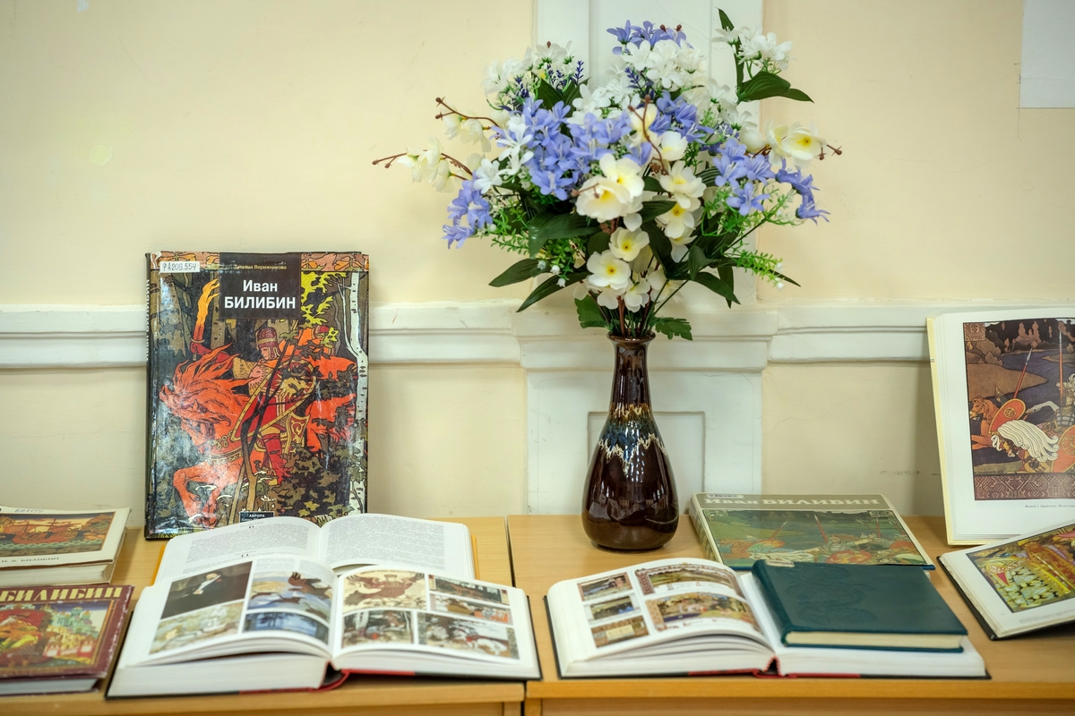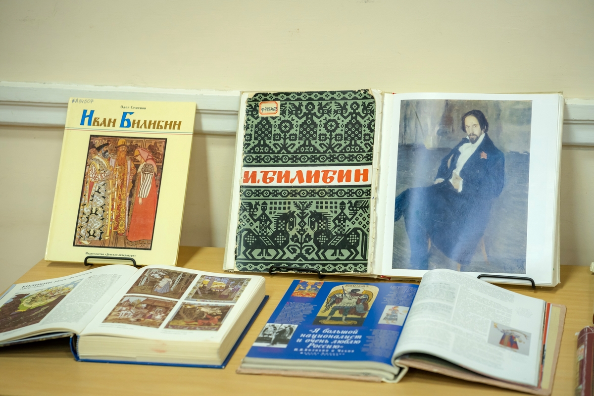 Научно-популярные издания, представленные на экспозиции, раскрывали уникальные особенности творчества И. Я. Билибина, помогая лучше понять его вклад в развитие русского искусства. Книги содержали детальные описания художественных приёмов мастера, его необычных и новаторских решений в области работы со светом и цветом.