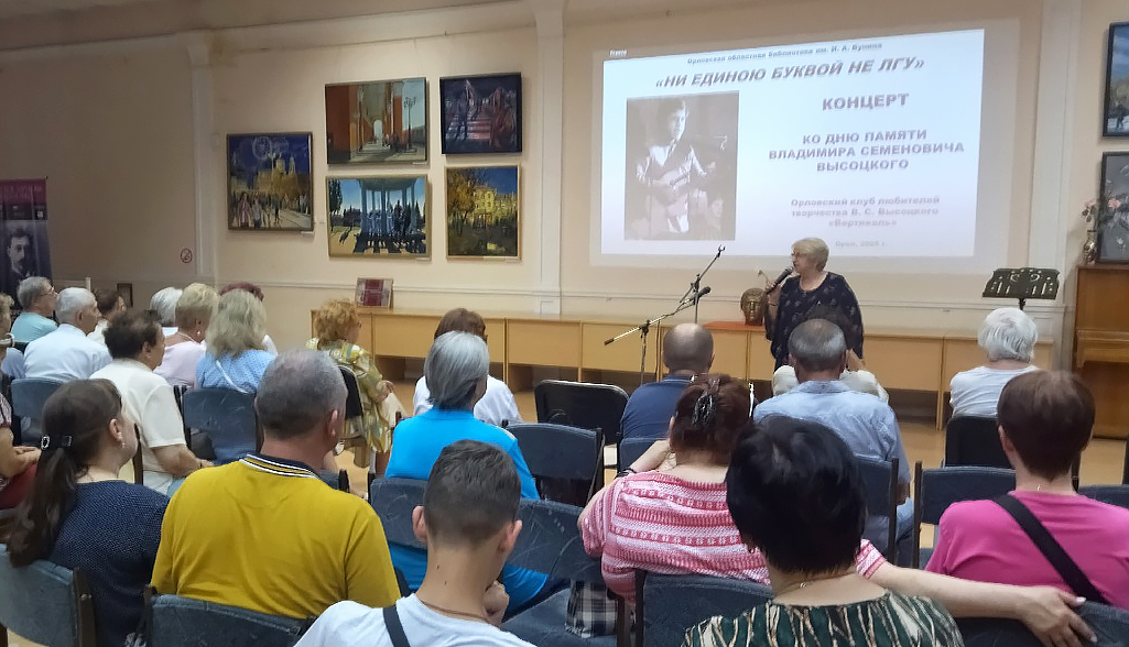 27 июля в библиотеке им. И. А. Бунина прошел концерт орловского клуба любителей творчества В. С. Высоцкого «Вертикаль», посвященный Дню памяти В. С. Высоцкого: «Ни единой строчкой я не лгу».