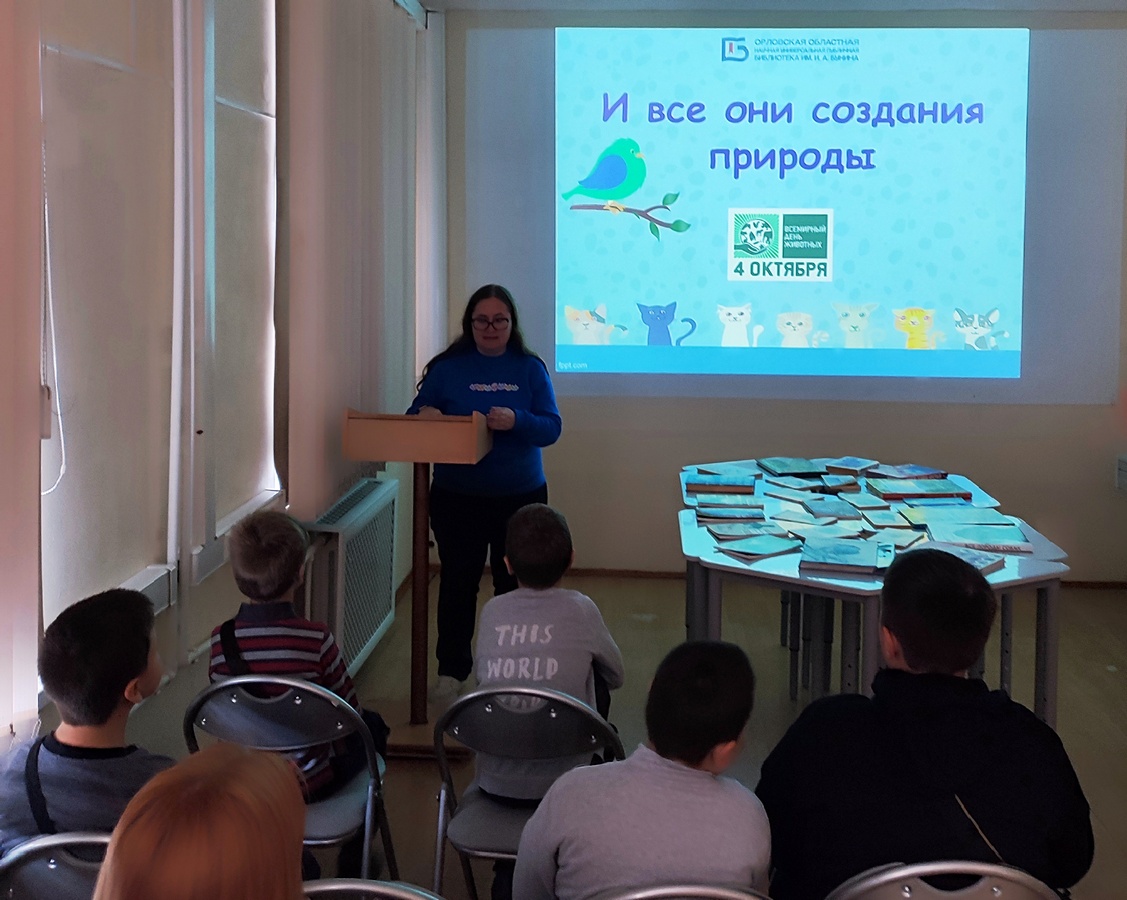 4 октября 2025 года отделом производственной литературы был проведен лесной репортаж «И все они создания природы» для учащихся гимназии № 39 им. Фридриха Шиллера. Мероприятие прошло в рамках проекта «Суббота орловского школьника», а также в рамках празднования Всемирного дня защиты животных.