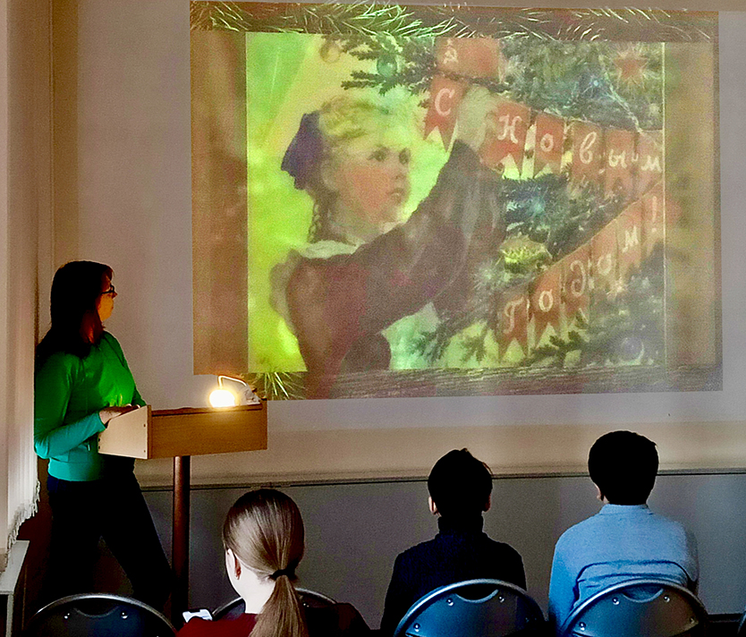 Библиотекари представили интересную презентацию, в которой рассказали о праздновании Нового года в разных государствах, а также о связанных с ним культурных особенностях. Школьники также узнали, когда появились первые ёлочные игрушки и из каких материалов они изготавливались.