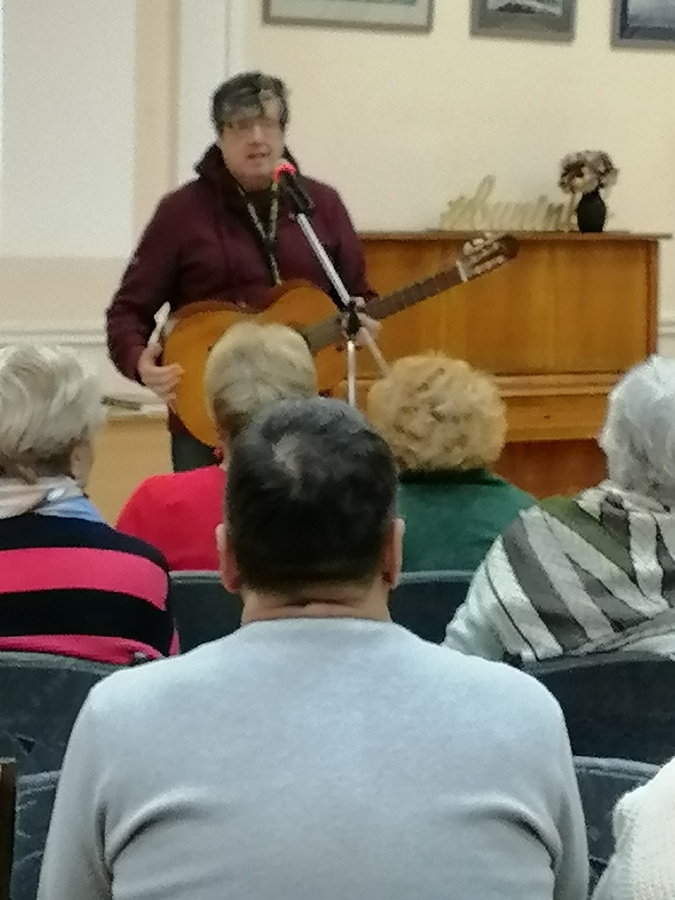 На встрече в библиотеке Виктор Леонидов выступил как композитор, автор-исполнитель песен, посвященных белой эмиграции с программой «Гитара и Русское Зарубежье». Свое выступление он открыл одной из своих любимых песен «Русские бригады». В программе прозвучали так же песни, написанные им для кинофильмов Никиты Михалкова и Е. Н. Чавчавадзе из цикла «Русские без России», песни Высоцкого, творчество которого он высоко ценит, и многие другие. В ходе своего выступления Виктор Владимирович не только пел и декламировал стихи, но и рассказывал о героях своих песен.