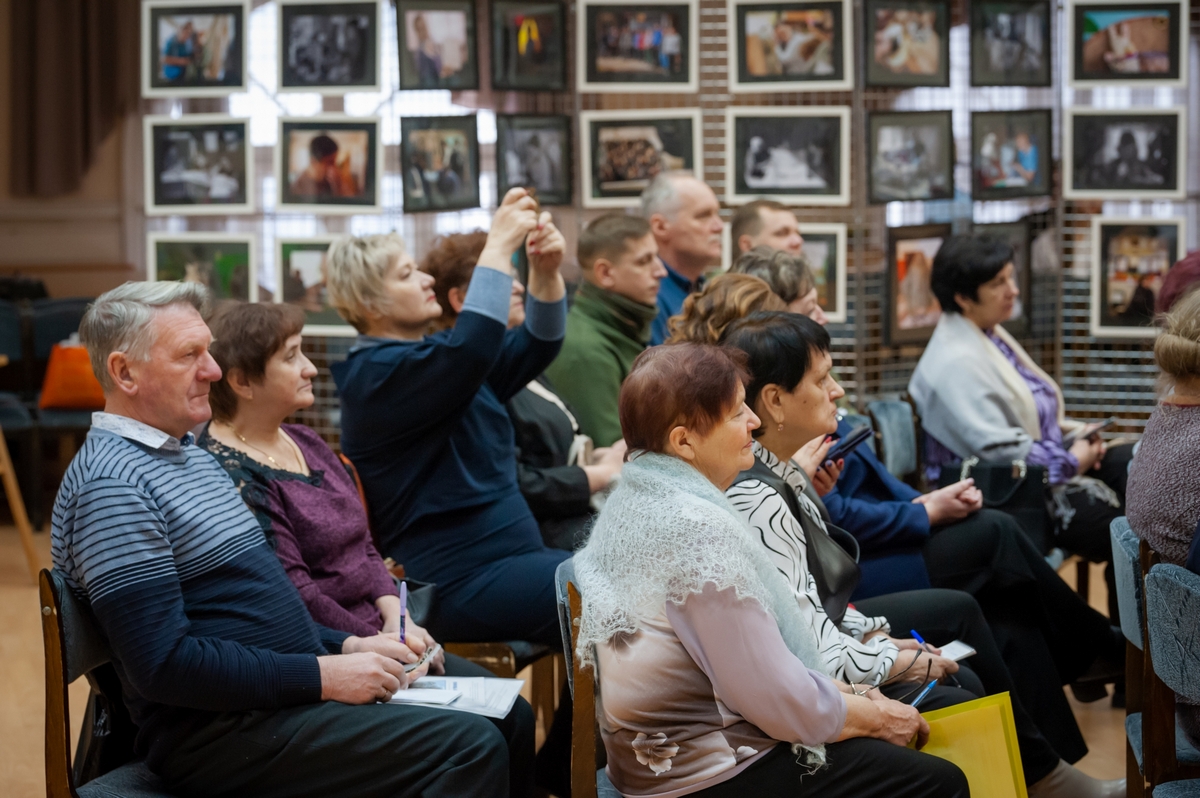 Презентация сопровождалась чтением стихотворений и живым общением с обсуждением представленных на выставке фотографий. Напоминаем, экспозиция стала результатом поездок команды проекта в пункты сбора гуманитарной помощи и волонтерские объединения, в которых плетут маскировочные сети, делают окопные свечи, шьют одежду и многое.