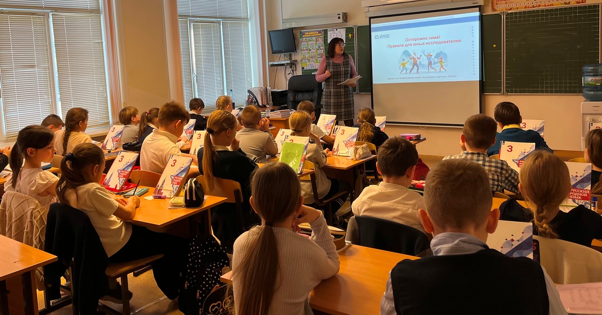 5 февраля 2026 года сотрудниками отдела производственной литературы в рамках зимнего этапа Всероссийской акции «Безопасность детства – 2025/26» для учащихся лицея №1 имени М. В. Ломоносова были проведены уроки безопасности «Осторожно зима! Правила для юных исследователей».