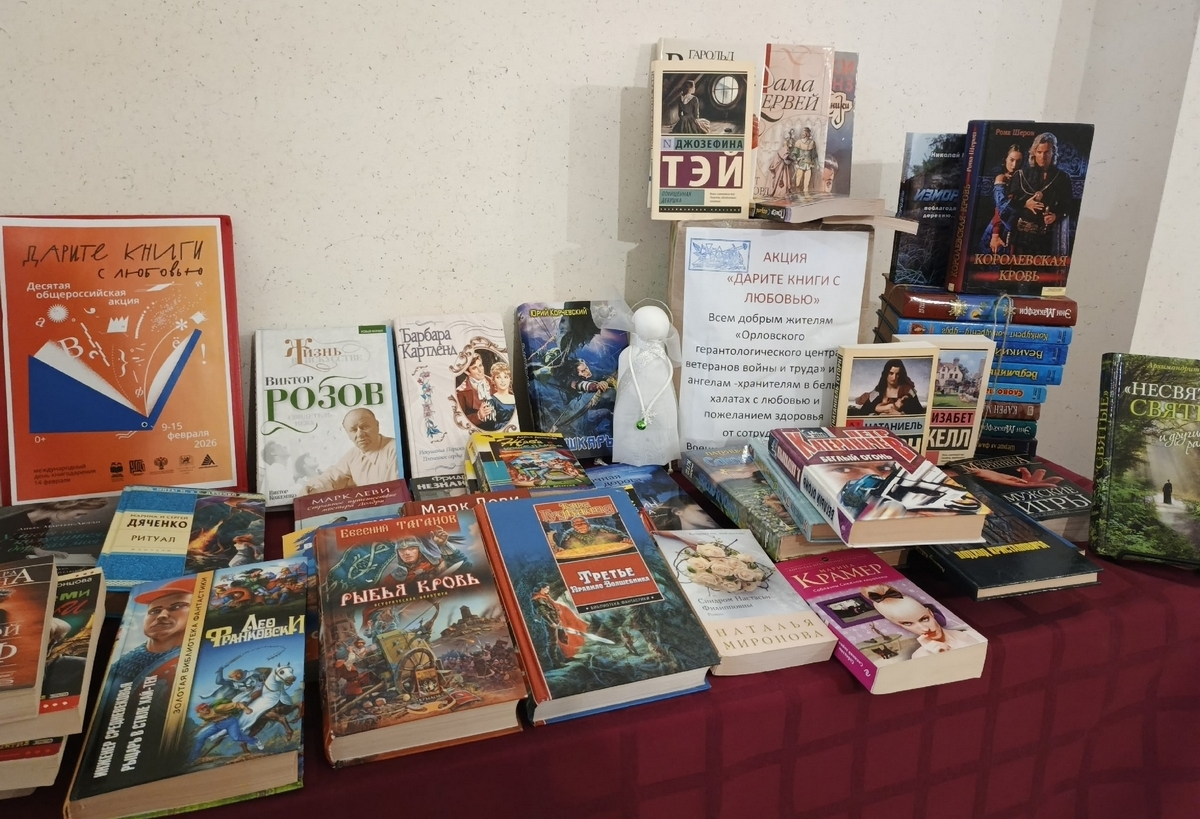 С 9 по 15 февраля 2026 года Орловская областная библиотека им. И. А. Бунина, ее сотрудники, читатели и постоянные партнеры присоединились к десятой Общероссийской акции «Дарите книги с любовью». Событие было приурочено к Международному дню книгодарения – 14 февраля.