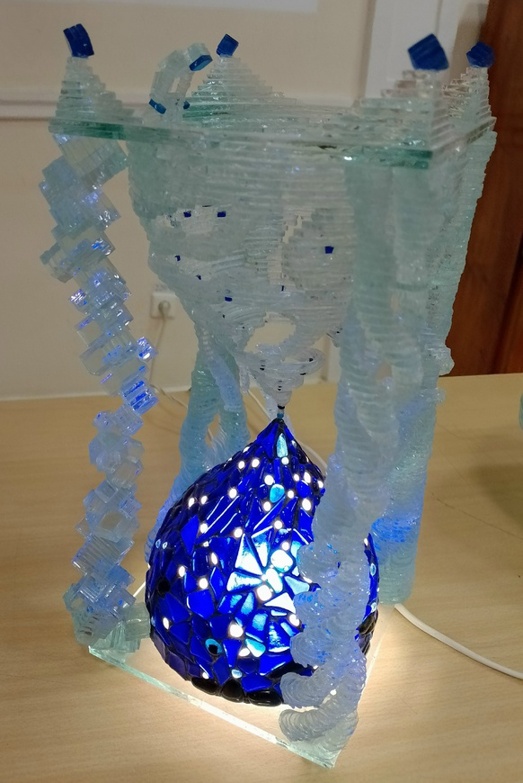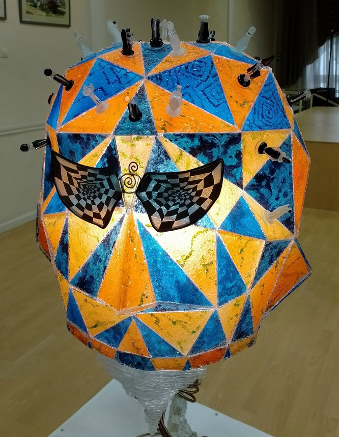 Творческий дуэт Куликовых представил моноспектакль, героями которого стали семь светящихся стеклянных работ из «Шахматной коллекции» Игоря Николаевича – народного мастера по цветному стеклу из Брянской области.