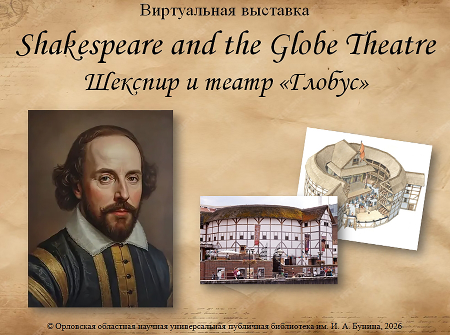 Всемирный день театров отмечается ежегодно 27 марта. К этой дате отделом документов на иностранных языках Орловской областной библиотеки им. И. А. Бунина, 16 марта 2026 года, была представлена виртуальная выставка «Shakespeare and the Globe Theatre», на английском языке с параллельным переводом на русский.