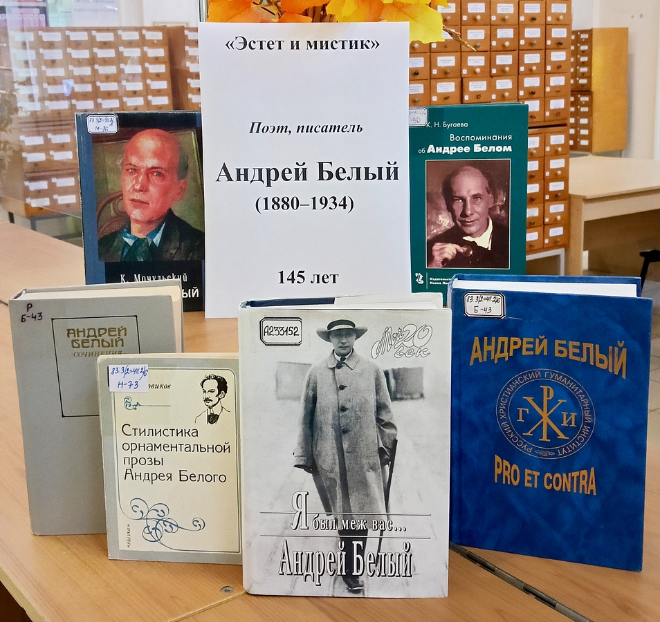 26 октября исполняется 145 лет со дня рождения Андрея Белого (псевдоним Бориса Николаевича Бугаева) – поэта, писателя и мыслителя, представителя младшего поколения символистов Серебряного века. К этой дате в читальном зале Орловской областной библиотеки имени И. А. Бунина подготовлена выставка литературы «Эстет и мистик». Она работает с 1 по 31 октября 2025 года.