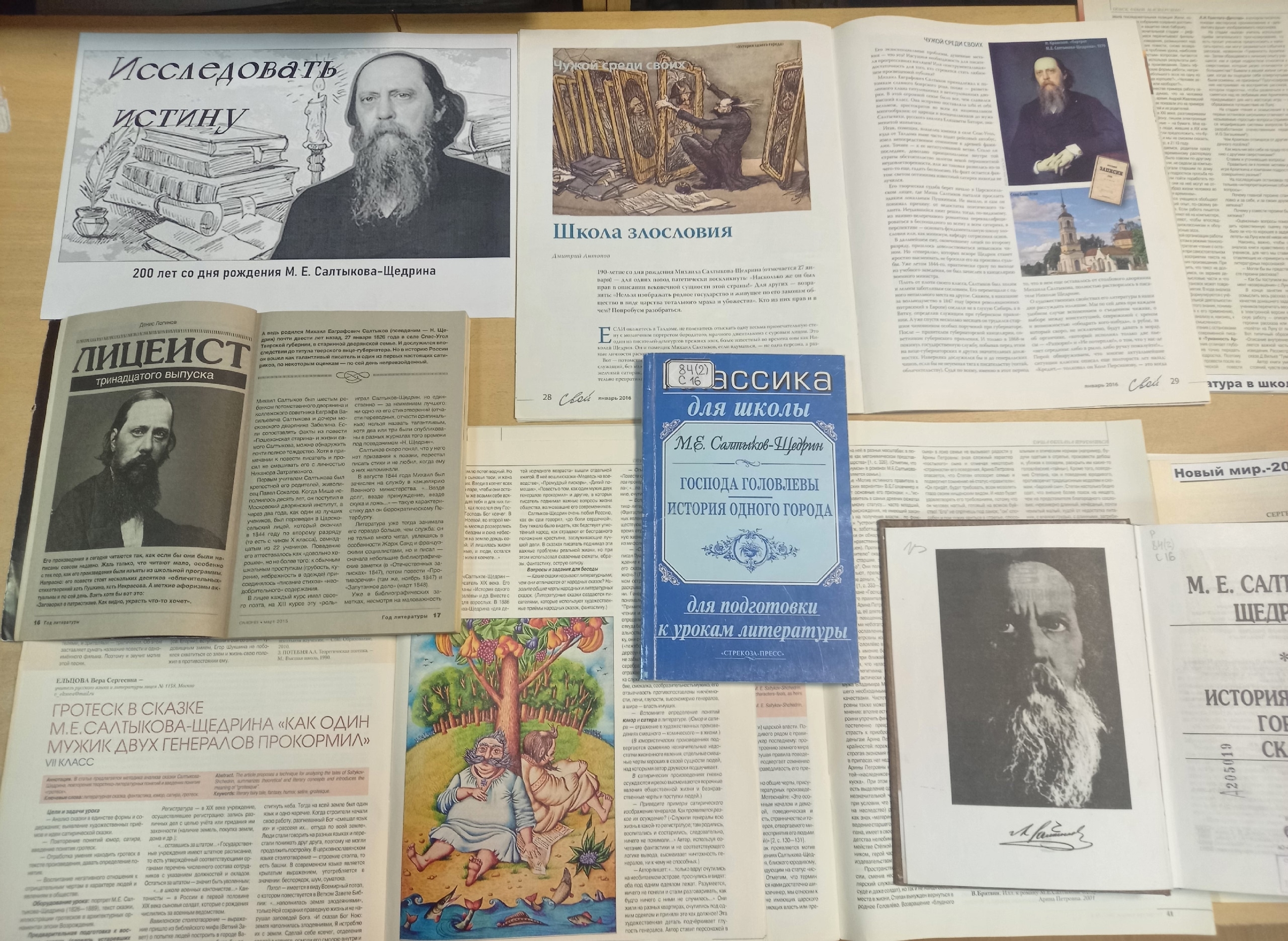 Материалы, опубликованные в изданиях: «Вопросы литературы», «Смена», «Новый мир», «Литературная газета» и др., знакомят читателя с жизненным и творческим путем писателя. Статьи в изданиях в помощь учителю «Литература в школе», «Русская литература» и др. дают методические рекомендации по изучению произведений М. Е. Салтыков-Щедрина.