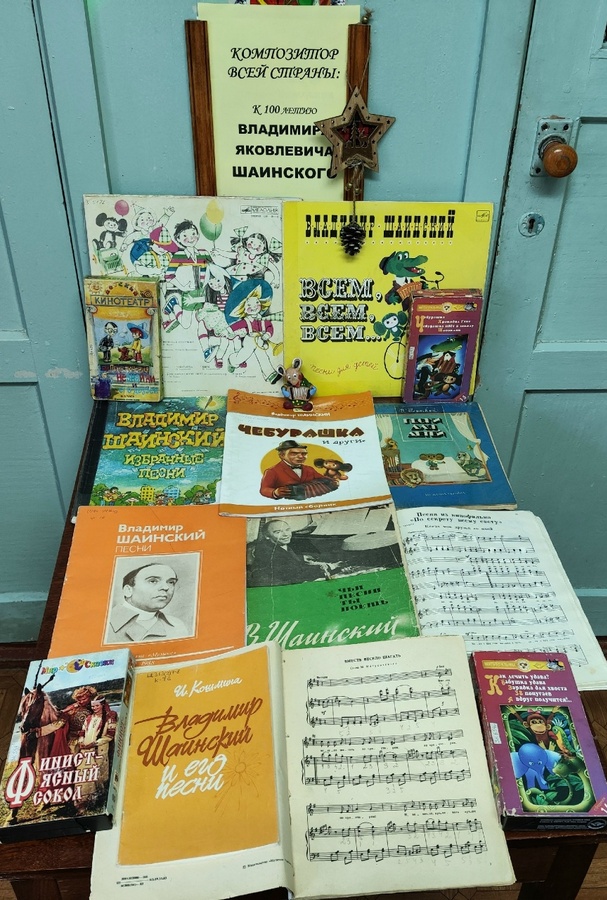 С 15 по 21 декабря 2025 года в отделе искусств Орловской областной библиотеки им. И. А. Бунина работает выставка музыкально-нотной литературы «Композитор всей страны: к 100-летию Владимира Яковлевича Шаинского».