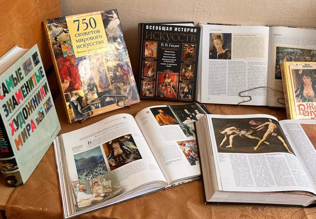 На выставке литературы ««Ренуар-тепло февральского солнца» 185 лет со дня рождения французского художника Пьера Огюста Ренуара», представлены художественные альбомы и энциклопедии.
