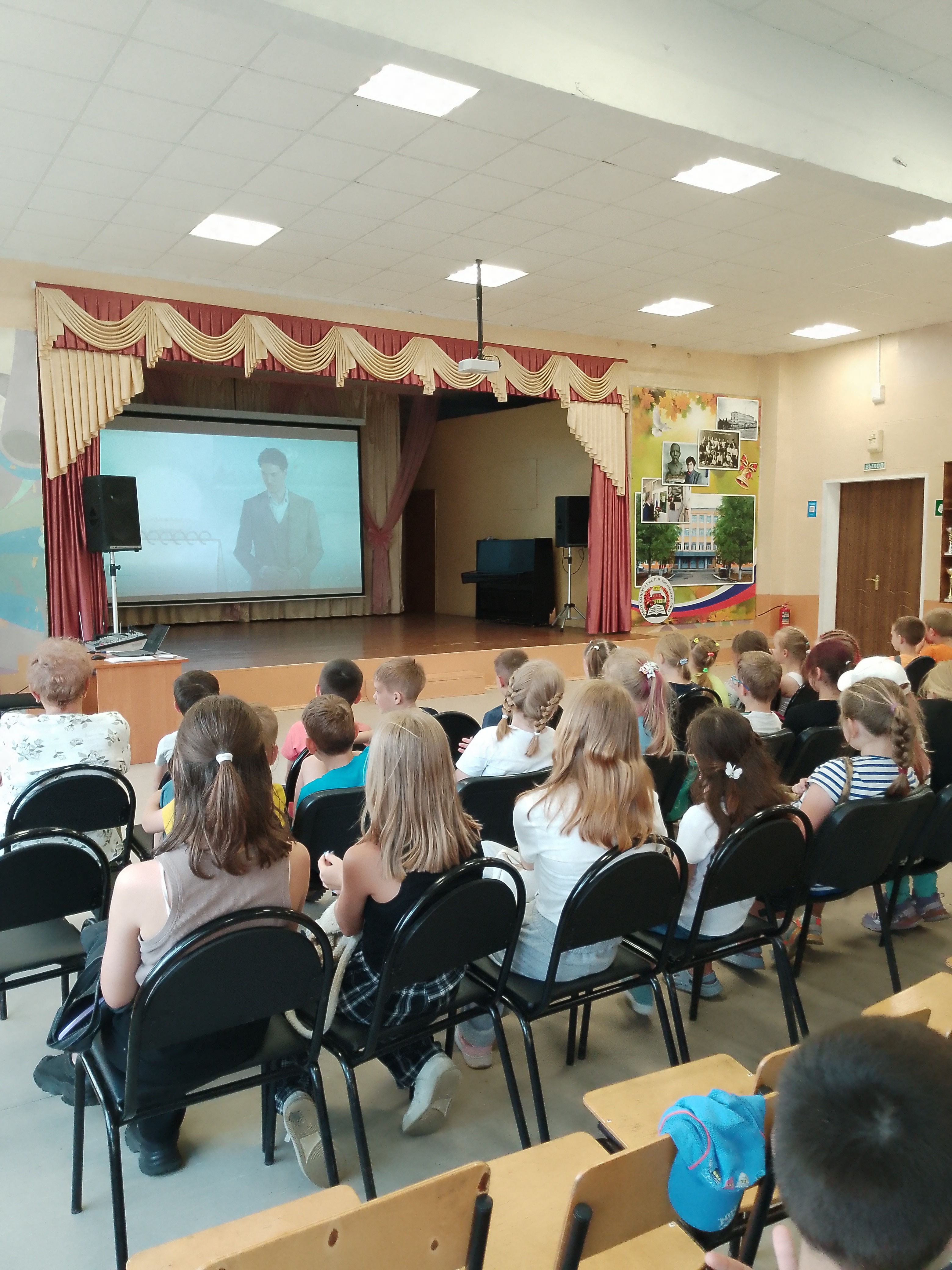 Дети внимательно смотрят отрывки из фильмов о наших защитниках