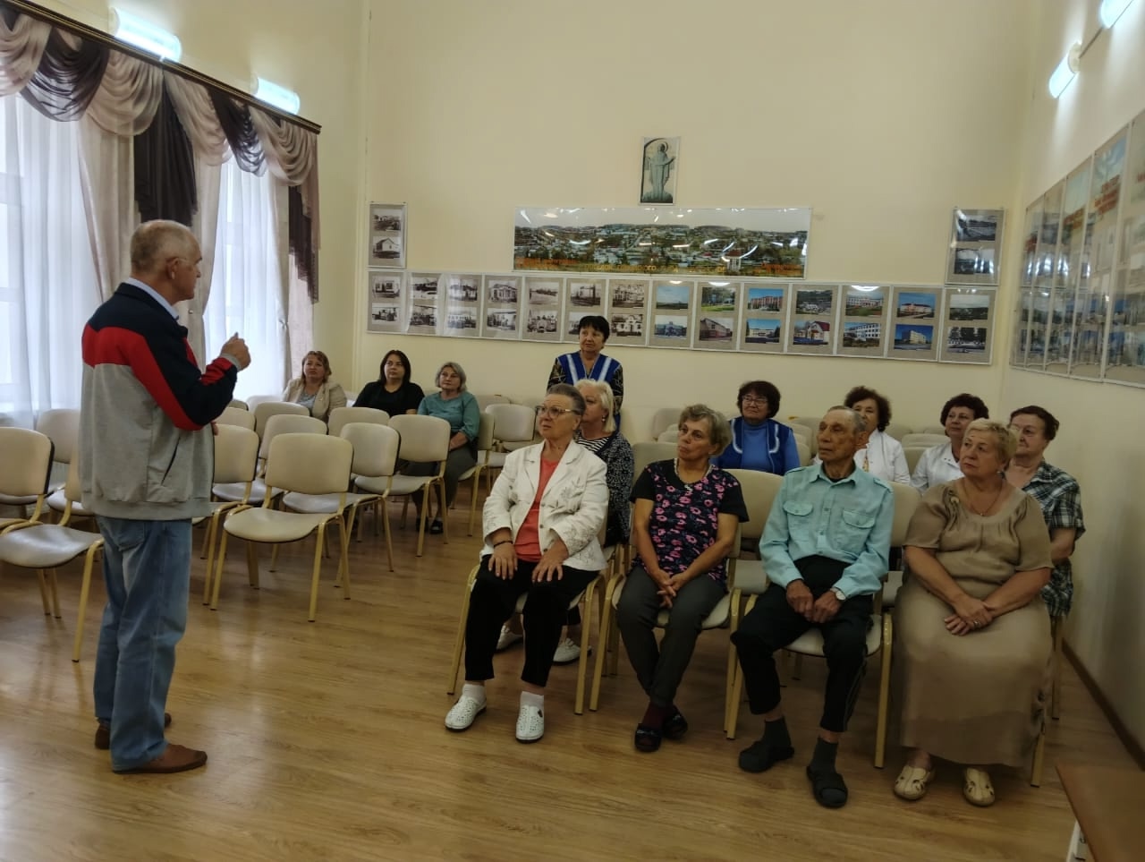 Директор Покровской библиотеки Александр Михайлович Полынкин поговорил с собравшимися об истории Государственного флага, об изменениях, которые происходили с ним на протяжении веков, о значении цветов российского триколора в эпоху правления Петра I и в настоящее время.