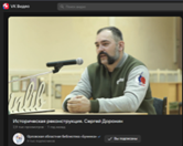 Доронин С. Историческая реконструкция : [видеоинтервью] / С. Доронин, беседовала Н. Ставцева // Орловская областная библиотека «Бунинка» : [страница группы рос. соц. сети ВКонтакте]. 31 марта. 2023. 00:27:34 (время воспроизведения). URL: https://vk.com/video/playlist/-215540055_5?z=video-215540055_456239144%2Fclub215540055%2Fpl_-215540055_5 (дата обращения 26.06.2024). | |