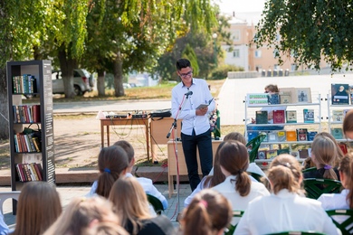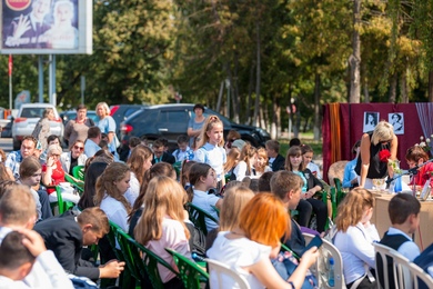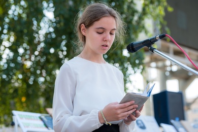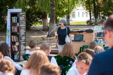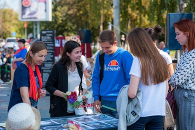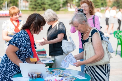 библиографической рулетке в рамках квиз-игры. Собравшиеся на площади читали