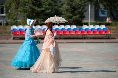 девушек приглашали жителей города ответить на вопросы викторин, попытать удачи в