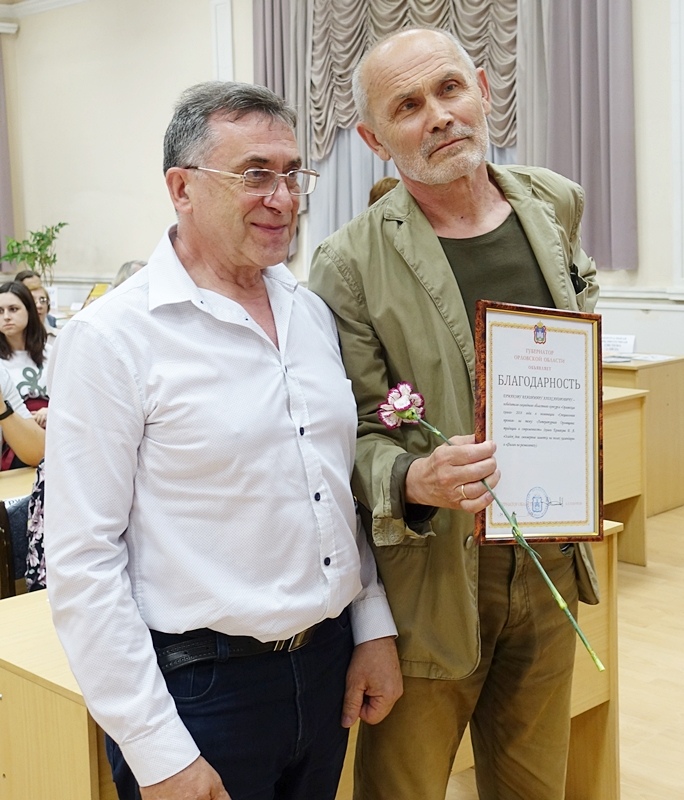 Конкурсная комиссия отметила высокий уровень многих представленных на конкурс орловских изданий авторы и составители, которых были награждены Благодарностью Управления культуры и архивного дела Орловской области за активное участие в развитии культуры. Это издаваемый Орловской областной организацией Союза писателей России ежегодник «Орел литературный»; «Моё гнездо, где вырос я…»: каталог мемориальных предметов И. С. Тургенева из собрания Государственного мемориального и природного музея-заповедника И. С. Тургенева «Спасское-Лутовиново» (Тула, 2018); продолжающееся издание Орловского государственного университета имени И. С. Тургенева «Орловский текст российской словесности»; книги Т. И. Грибановой «Узелки на память: поэма о природе» (Орел: Картуш, 2017), «Не трын-трава: деревенские были» (Орел, 2016) и «Колыбель моя посреди земли: песнь роду-племени моему» (Орел: Картуш, 2017); Е. Н. Ашихмина «Орел. Жития и жители» (Орел: Изд. Александр Воробьев, 2018); научно-издательский проект, посвященный Илье Старинову, реализуемый Среднерусским институтом управления – филиалом Российской академии народного хозяйства и государственной службы; С. И. Давыдов «Забытые на столетие. Генерал Лагунов: война и плен» (Орел, 2018); подготовленная редакцией газеты «БЭТА» книга «Болхов из глубины веков до наших дней: (продолжая написанное)» (Болхов, Орел, 2018). В награждении принял участие учредитель и издатель газеты «БЭТА» генеральный директор АО «Болховский завод полупроводниковых приборов» Поярков Вячеслав Николаевич.