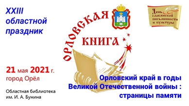 Праздник «Орловская книга - 2021» (12+) 21 мая 2021 года в Орловской областной научной универсальной публичной библиотеке им. И. А. Бунина состоялся XXIII областной праздник «Орловская книга – 2021».