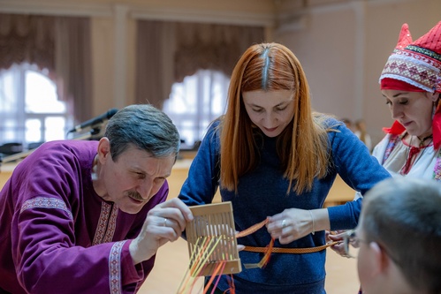 вместе попробовать сплести большой пояс единства, посмотреть, как ткали