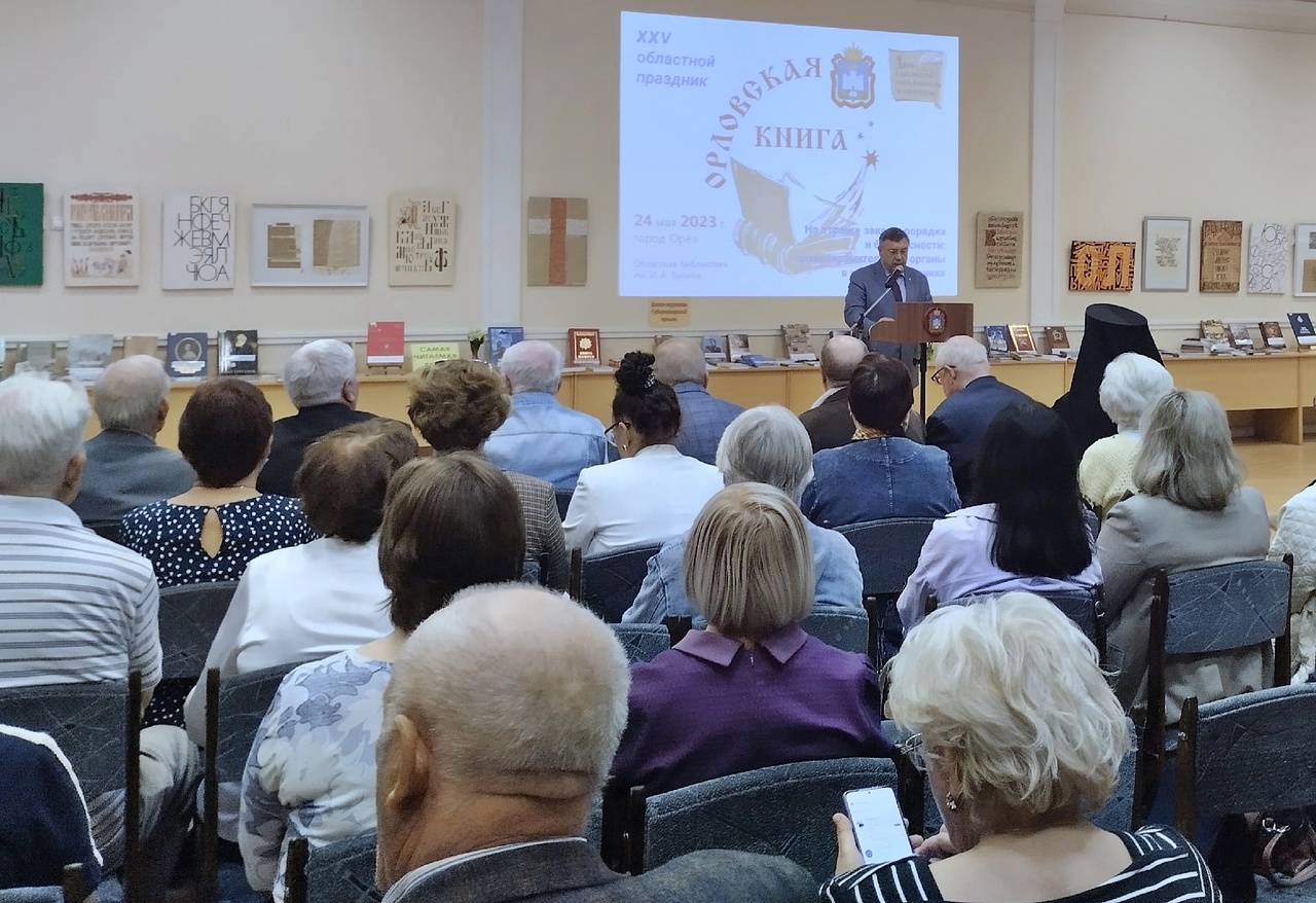 Праздник «Орловская книга – 2023» (12+) 24 мая 2023 года в Орловской областной библиотеке им. И. А. Бунина состоялся XXV областной праздник «Орловская книга – 2023». Его цели – поддержка двухвековой традиции орловского книгоиздания, объединение усилий творческих организаций, издателей, библиотек и книжной торговли в продвижении до читателей лучших местных образцов современного книгопечатанья, оказание помощи библиотекам в комплектовании фондов книгами орловских издательств. «Орловская книга» стала особым явлением в культурной жизни орловцев.