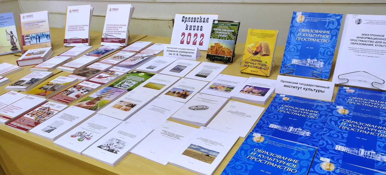 Создатели документально-публицистического издания «30 лет во имя жизни» Особое место занимала выставка «Орловская книга-2022», знакомящая гостей с книгами, вышедшими в орловских издательствах в прошлом году, которых насчитывалось 413 изданий. Все они учтены в регистрационном каталоге, выпускаемом Орловской областной библиотекой им. И. А. Бунина с 1999 года. Каталог – это часть национального книжного репертуара, отражающая творческий потенциал орловских писателей, ученых, художников, публицистов. В нем учитываются все печатные и электронные издания, поступающие в библиотеку в соответствии с «Законом обязательном экземпляре документов Орловской области».