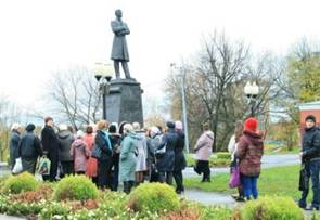 памятнику И. А. Бунина скульптора Олега Уварова. Проследовали к городскому саду