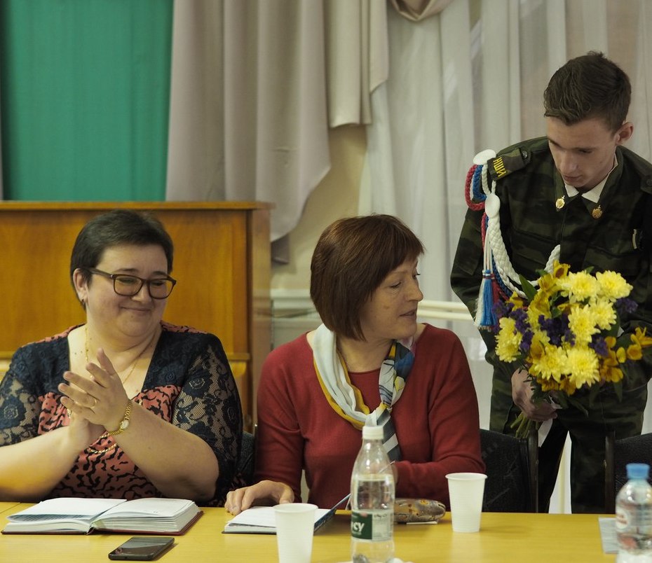 Праздничное мероприятие в рамках проекта «Россия – космическая держава» - флешбук «Нужные книги ты в детстве читал». Слева направо: Бородина Людмила Ивановна – директор Орловской областной библиотеки им. И. А. Бунина; Людмила Георгиевна Мисуркина – мать Героя России орловского космонавта Александра Мисуркина; воспитанник Некрасовской школы-интерната