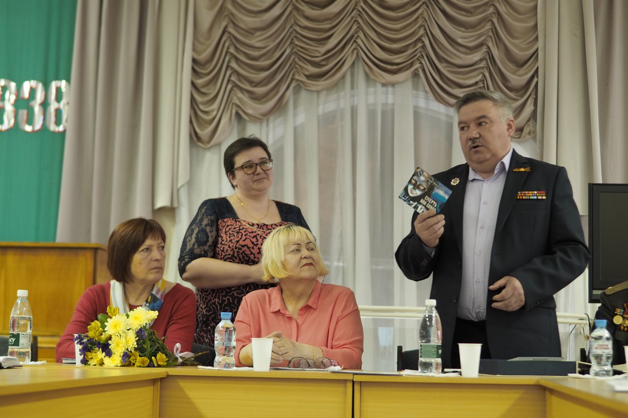 Флешбук «Нужные книги ты в детстве читал». Слева направо: Людмила Георгиевна Мисуркина – мать Героя России орловского космонавта Александра Мисуркина; Бородина Людмила Ивановна – директор Орловской областной библиотеки им. И. А. Бунина; Лейзерова Наталья Васильевна – руководитель Орловского отделения детского фонда; Ветчинников Сергей Алексеевич – главный редактор Военно-исторического журнала «Орловский военный вестник»