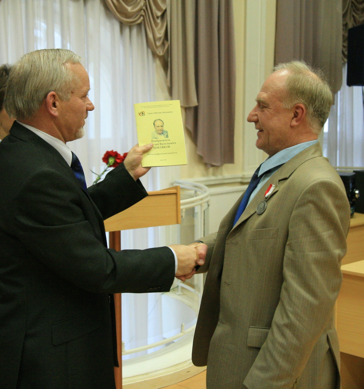 День новатора. На снимке (слева на право) директор Орловской библиотеки им. И. А. Бунина Бубнов Валерий Васильевич (годы руководства 1991- 2015) и заслуженный изобретатель Орловщины, кандидат технических наук, доцент Земляков Николай Васильевич