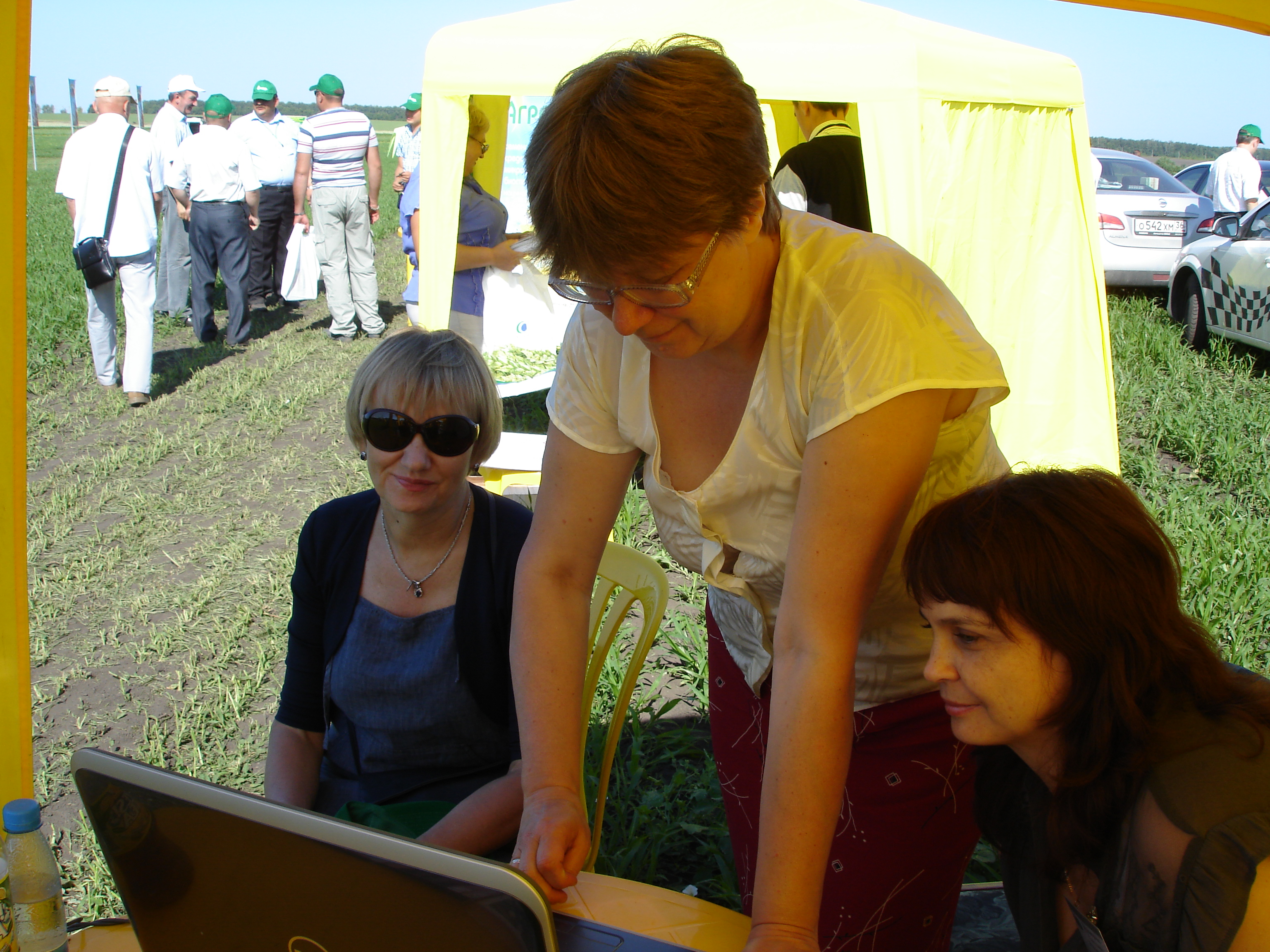 Международный научный форум «День поля». Презентация базы данных «Патенты России: описание изобретений». На снимке (слева направо) заместитель директора по научной работе Орловской областной библиотеки им. И. А. Бунина – Шатохина Наталья Захаровна, заведующая отделом автоматизации и множительных средств Тимошук Елена Владимировна, заведующая отделом производственно-технических документов библиотеки Бухтиярова С. В.