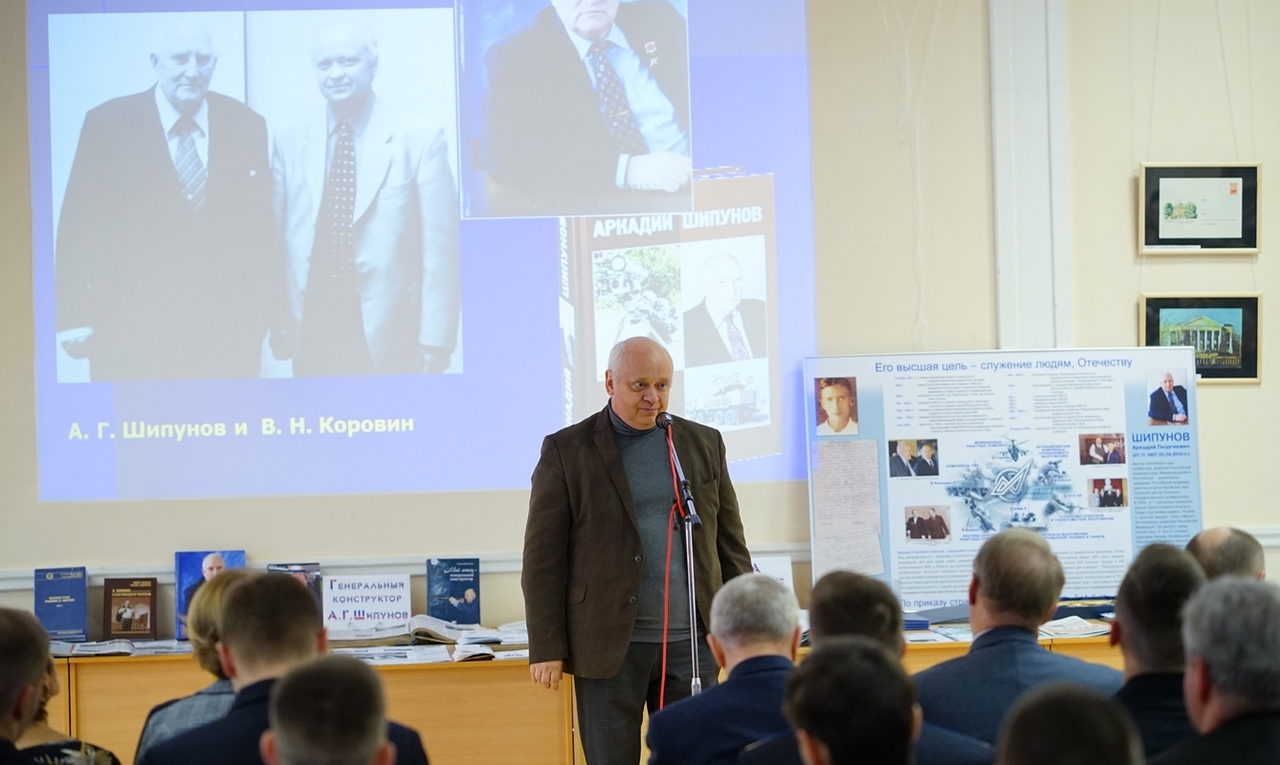 Меропирятие (научная встреча), посвященное уроженцу г. Орла, выдающемуся оружейнику А. Г. Шипунову. Выступает Владимир Николаевича Коровин – заместитель главного редактора Объединенного международного биографического центра, лауреат литературной Премии «Щит и Меч Отечества», автор книги «Генеральный конструктор А. Г. Шипунов»