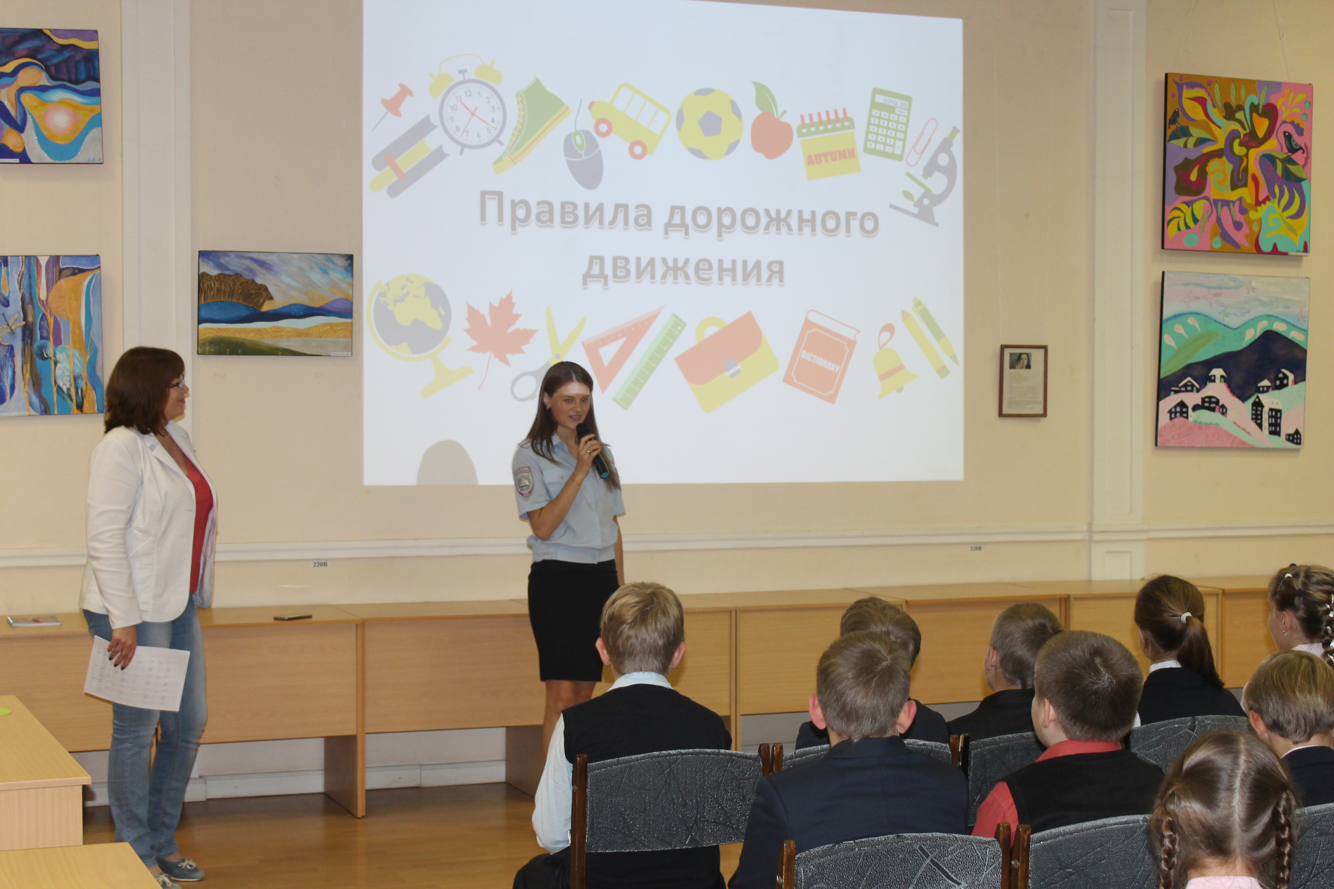 Занимательный урок «Правила дорожные знать каждому положено!» На фото Романова Виктория Александровна – главный библиотекарь ОПТД, Жукова Кристина Владиславовна, младший лейтенант МВД.