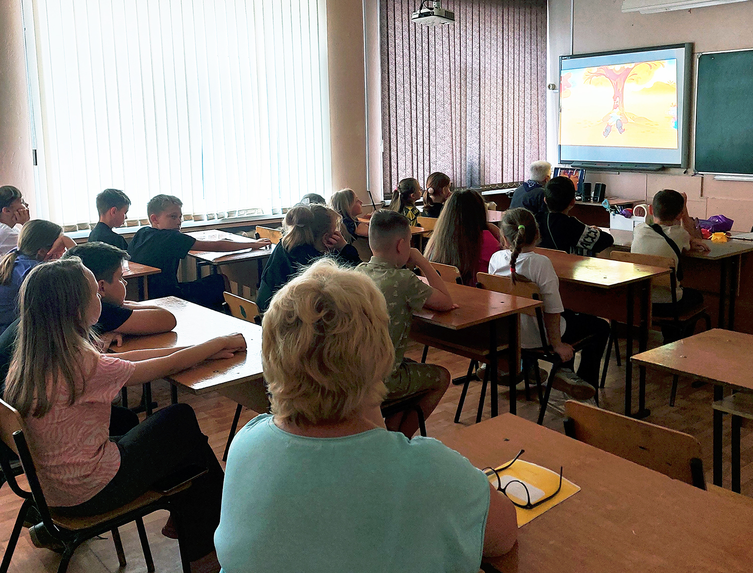 Дети приняли участие в интеллектуальной игре, состоящей из разных заданий. Они познакомились c советским мультфильмом «Зимовье зверей», созданным студией «Союзмультфильм» в 1981 году по мотивам одноимённой русской народной сказки. Участникам предлагалось посмотреть сказку. После чего они выполнили познавательные и занимательные игровые задания.