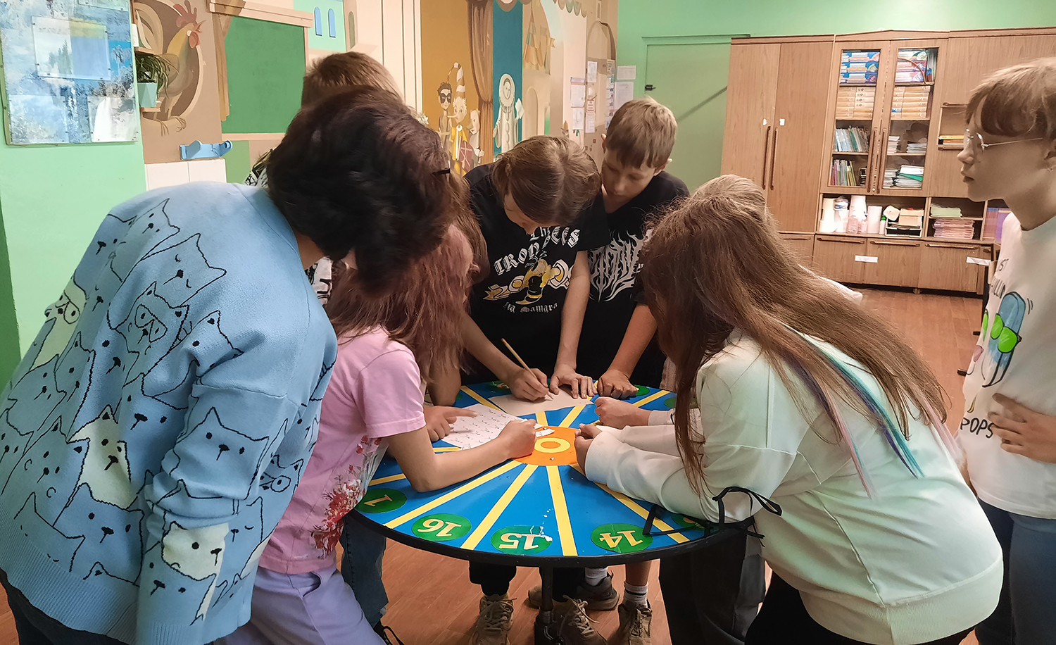 На библиографическую игру «Крутится волчок» пришли школьники из 3-х групп школьного лагеря разных возрастов: от ребят постарше до совсем маленьких.