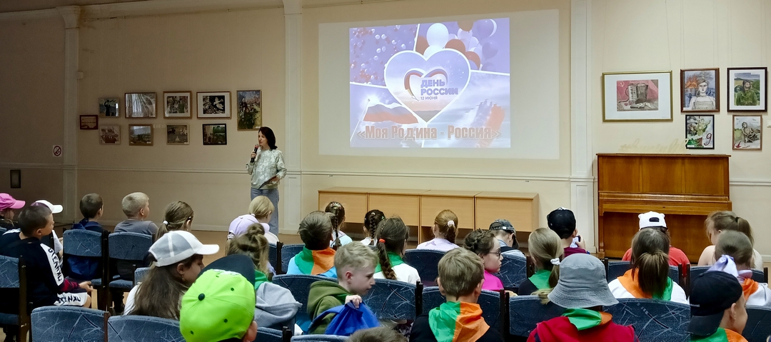 25 июня 2025 года в библиотеке состоялась познавательная тематическая встреча «Россия – Родина моя» для воспитанников пришкольного лагеря «Dragon family».