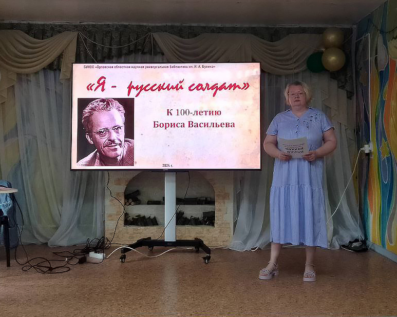 21 июля 2025 года сотрудники «Бунинки» посетили Детский санаторий «Орловчанка», чтобы провести для ребят литературно-патриотический час под названием «Я - русский солдат». Мероприятие было посвящено жизни и творчеству выдающегося писателя и сценариста Бориса Васильева.