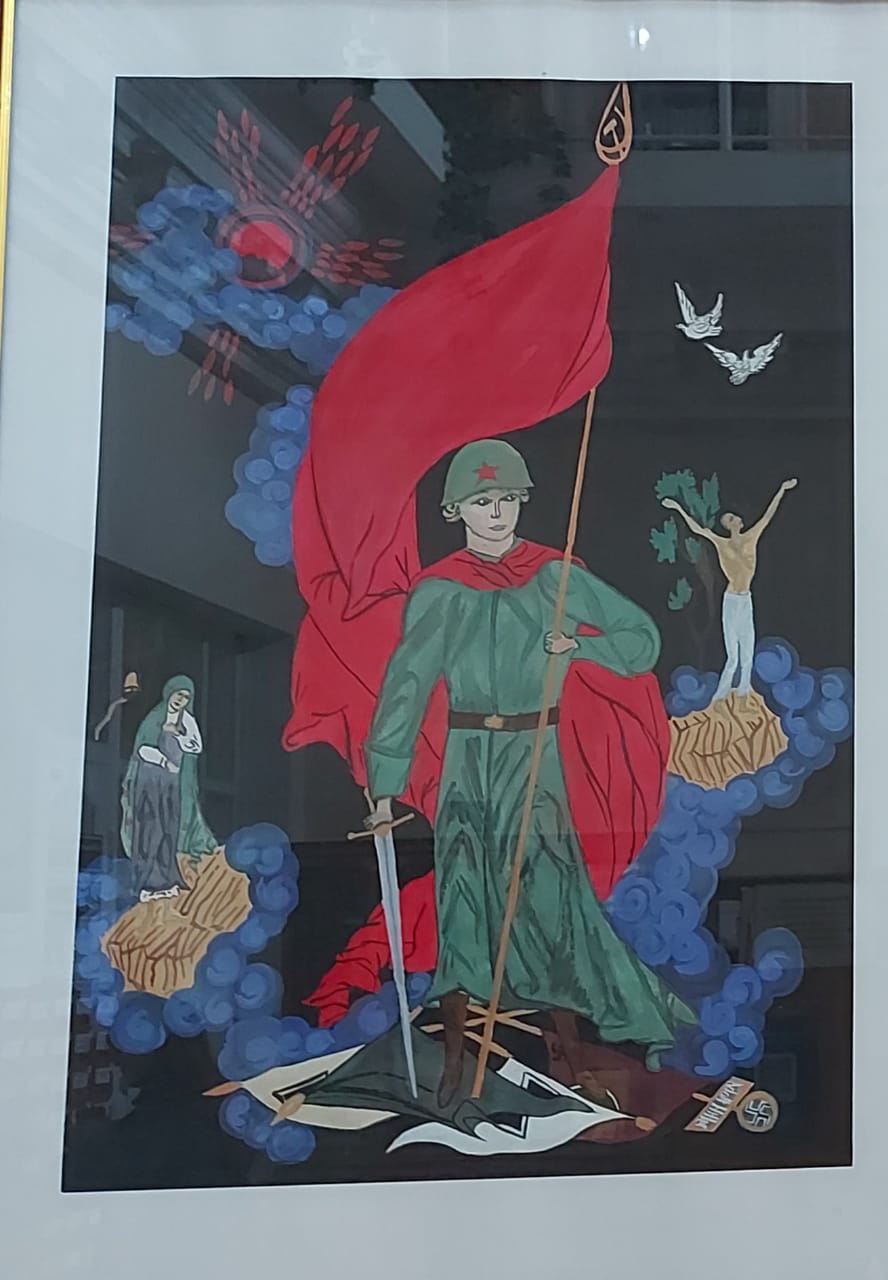 На экспозиции были представлены художественные произведения победителей и участников одноимённого областного конкурса имени Андрея Ильича Курнакова разных лет патриотической тематики.