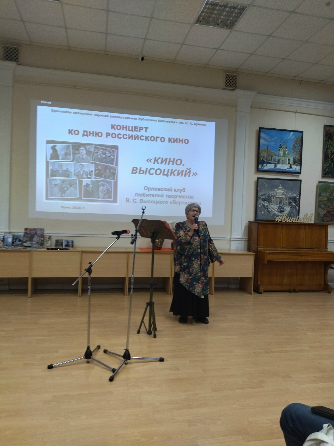 Орловский клуб любителей творчества Владимира Высоцкого «Вертикаль» подготовил для зрителей праздничный концерт с музыкальной программой из популярных отечественных кинофильмов, где снимался Владимир Семенович Высоцкий, а также выступал автором песен.