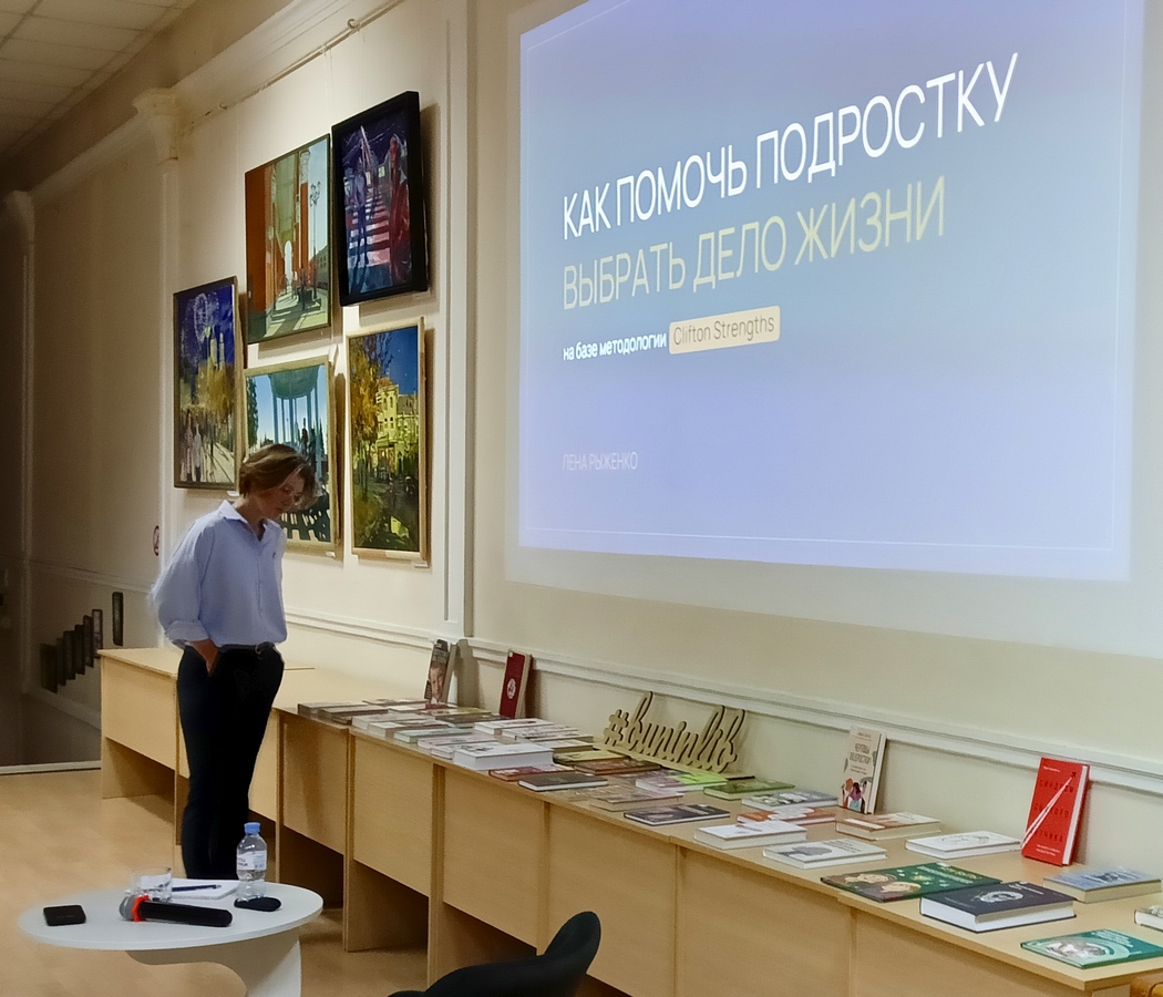 24 сентября 2025 года в универсальном читальном зале библиотеки прошёл мастер-класс «Как помочь подростку выбрать дело жизни». Спикером встречи выступила Елена Рыженко – основатель проекта «Медная гора», эксперт по выявлению талантов и потенциала человека.