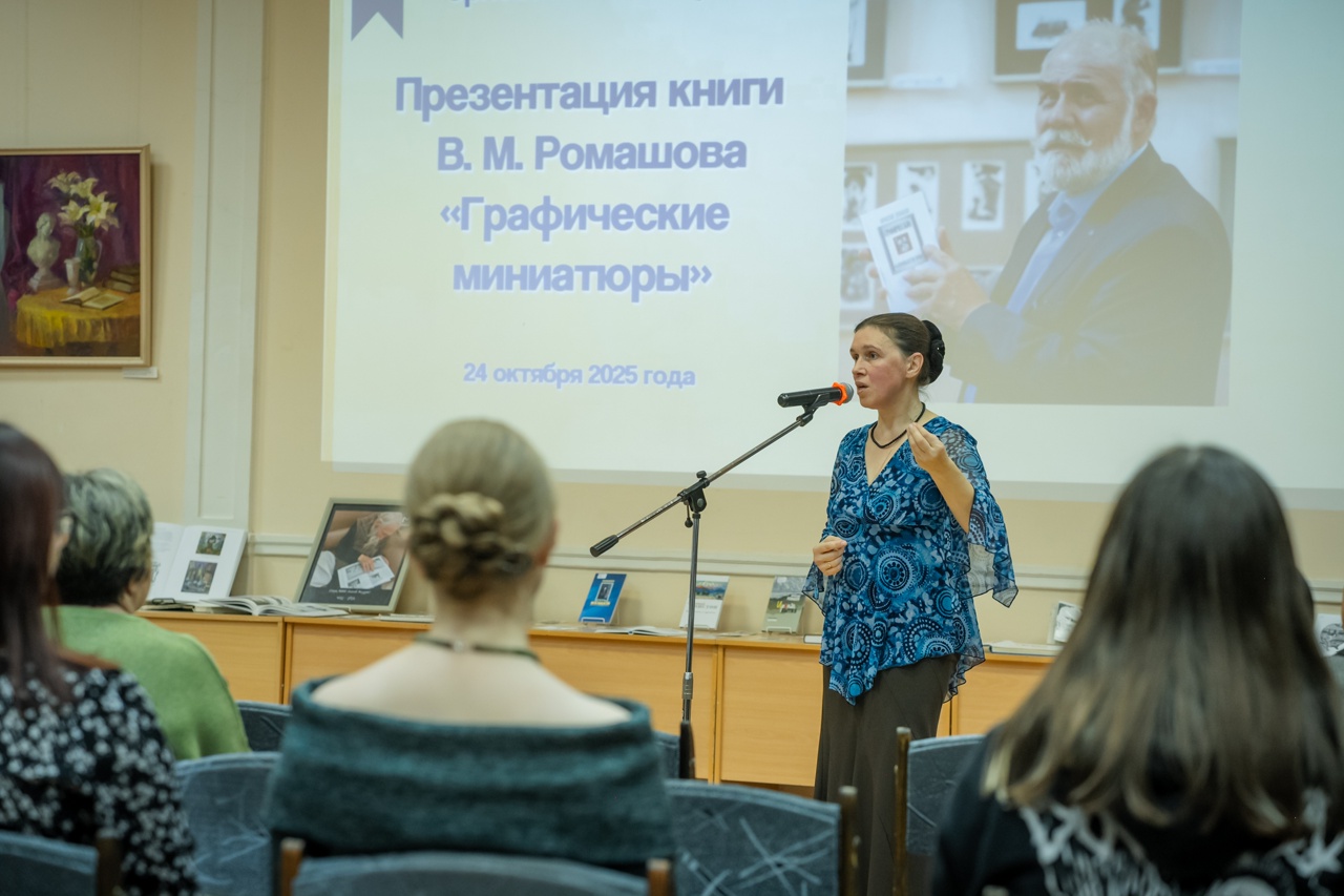 24 октября 2025 года в библиотеке состоялось 338-е заседание клуба «Орловский библиофил». О своей книге «Графические миниатюры» рассказал её автор, известный орловский художник В. М. Ромашов. Книга вышла в орловском издательстве «Картуш» в 2025 году. Это книжные знаки и иллюстрации, восточный календарь и знаки зодиака, памятная графика и юмор. В книге представлено 265 иллюстраций.