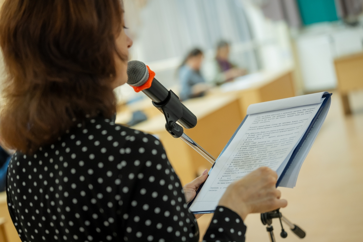 С утра библиотека наполнилась звуками шагов и разговорами. В 11:00 началась регистрация участников. Люди всех возрастов, от школьников до пенсионеров, выстраивались в очередь, чтобы получить бланки для написания диктанта. Организаторы позаботились о том, чтобы каждый мог почувствовать себя частью важного события.