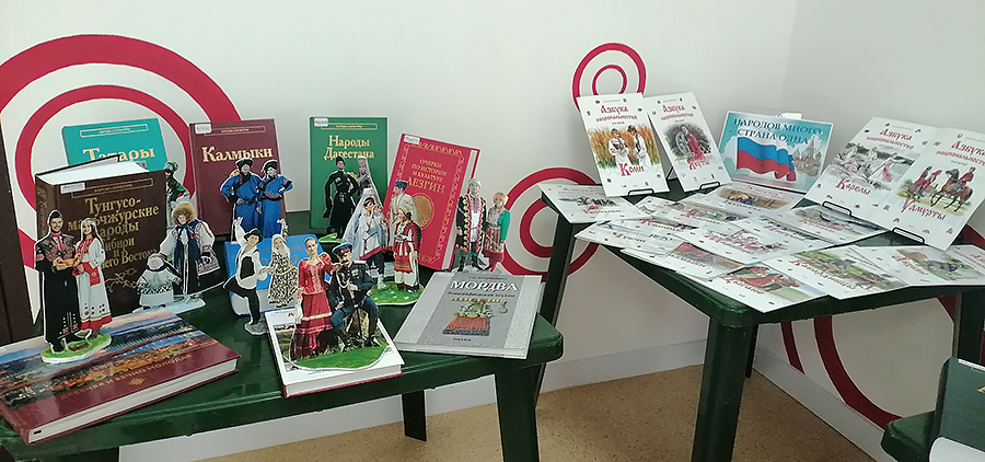 Особым подарком для участников стала уникальная книжная экспозиция «Народов много – страна одна», подготовленная сотрудниками отдела книгохранения, которые представили большое количество энциклопедий из серии «Народы и культуры» от издательства «Наука». Каждый том раскрывает этническую историю, уникальные традиции и демографический портрет различных народов России, предлагая пищу для ума как профессиональным историкам, так и просто любознательным читателям. Особый интерес вызвала красочная серия «Азбука национальностей». Эти энциклопедии небольшого формата с увлекательными рассказами о происхождении, быте, промыслах и творчестве народов России дополнены яркими иллюстрациями. Их листали и опытные педагоги, и молодые советники – каждый находил для себя что-то новое о многовековой мозаике культур, населяющих нашу страну. А для тех, кто вдохновился идеей увидеть всё своими глазами, библиотекари подготовили книгу-путеводитель «Открой свою Россию». Это издание предлагает взглянуть на знакомые туристические маршруты под новым углом, превращая чтение в увлекательное путешествие по просторам Родины.