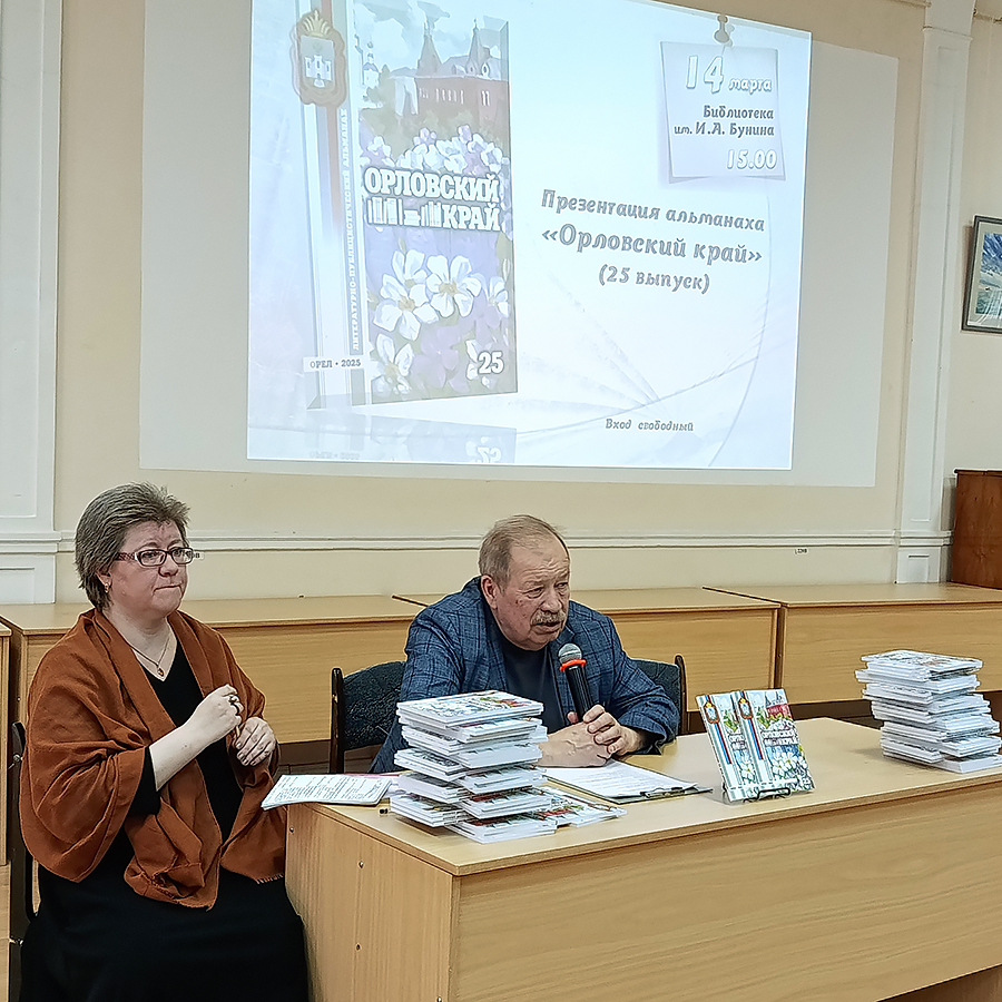 14 марта 2026 года, в Бунинке, в рамках работы литературно-поэтического клуба «Шаг навстречу» состоялась презентация 25-го выпуска литературно-публицистического альманаха «Орловский край». Альманах выпущен Орловским областным отделением «Союза литераторов Российской Федерации», в Издательском Доме «ОРЛИК», в 2025 г.