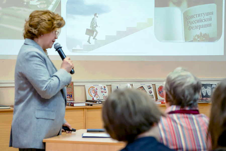 На выставке, приуроченной к лекции, были представлены издания, помогающие глубже понять истоки и эволюцию традиций, их значение для семьи, общества и государства. Особый интерес вызвали сборники народных обычаев и обрядов, которые открыли посетителям удивительный мир календарных праздников, семейных ритуалов и общинных традиций. Отдельный раздел выставки был посвящен истории семьи и традициям воспитания. Гости узнали, как складывались семейные отношения в разные эпохи, какие правила и обычаи помогали сохранять уважение между поколениями, как передавались навыки и знания от старших к младшим. Значительное внимание было уделено народному творчеству и фольклору. На выставке были представлены сборники пословиц, поговорок, загадок, песен и сказок, являющихся сокровищницей народной мудрости. Читатели увидели, как в этих коротких изречениях и историях отразились представления о добре и зле, честности, трудолюбии, гостеприимстве и других важных качествах.