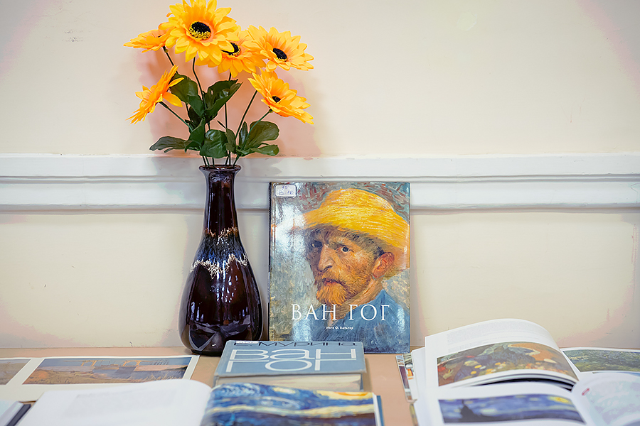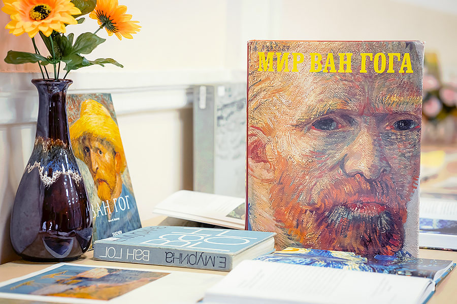 На выставке были представлены книги о жизни и творчестве Ван Гога, а также альбомы с репродукциями его знаменитых картин – от ранних работ до шедевров позднего периода, таких как «Звёздная ночь», «Подсолнухи». Гости выставки могли ознакомиться со сборниками писем художника: эти документы позволяют заглянуть в его внутренний мир и понять эволюцию художественных взглядов. Кроме того, вниманию посетителей были предложены биографические издания, а также книги об импрессионизме и постимпрессионизме, где творчество Ван Гога рассматривается в контексте эпохи.