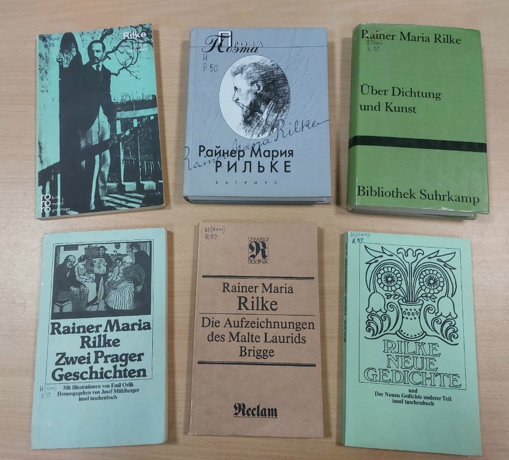 С 1 по 14 декабря 2025 года в отделе документов на иностранных языках Орловской областной библиотеки им. И. А. Бунина организована выставка литературы «Rainer Maria Rilke». Экспозиция приурочена к 150-летию со дня рождения австрийского поэта Райнера Марии Рильке (1875–1926).