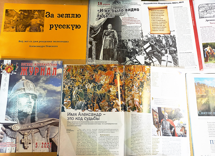 Об исторической роли выдающегося полководца и дипломата, о его духовном наследии и покровительстве земле Русской можно ознакомиться в журналах: «Вопросы истории», «Власть», «Наука и религия», «Свой» и др.