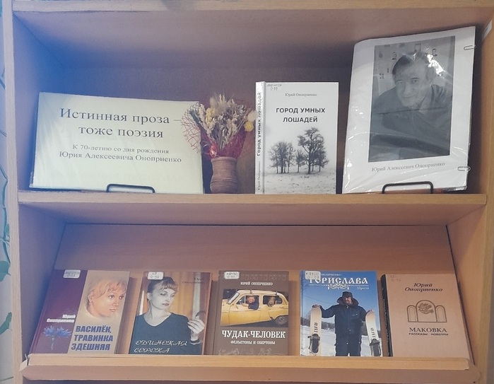 C 2 по 31 мая 2024 года в отделе краеведческих документов Орловской областной библиотеки им. И. А. Бунина работает выставка «Истинная проза – тоже поэзия». Она приурочена к 70-летию со дня рождения писателя и журналиста Ю. А. Оноприенко.